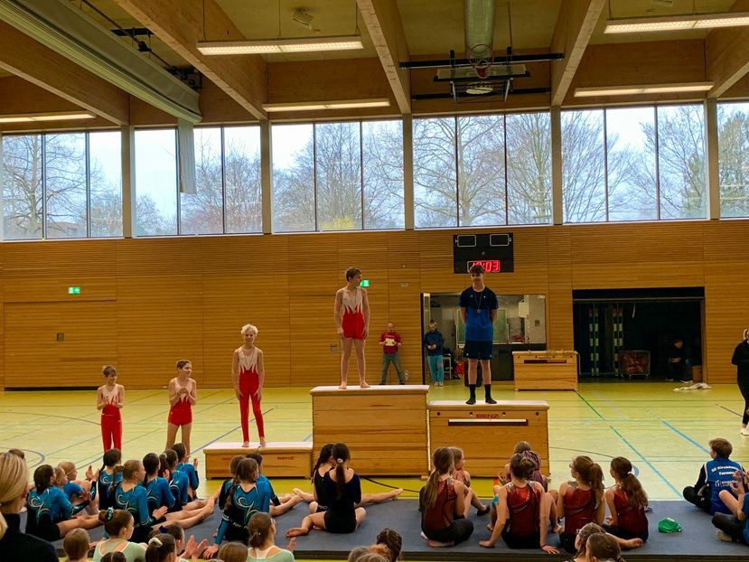 Mit einem Stadtschulmeister (SSM)- Titel beendete das Jungen- Turn- Team der AK 2011 und jünger ihren Wettkampf Mitte März 2025. Die Freude über die Goldmedaille war groß, zumal Ben Schmitt das Einzelgold und Mattis Eichner dazu Bronze in der Einzelwertung erturnten.